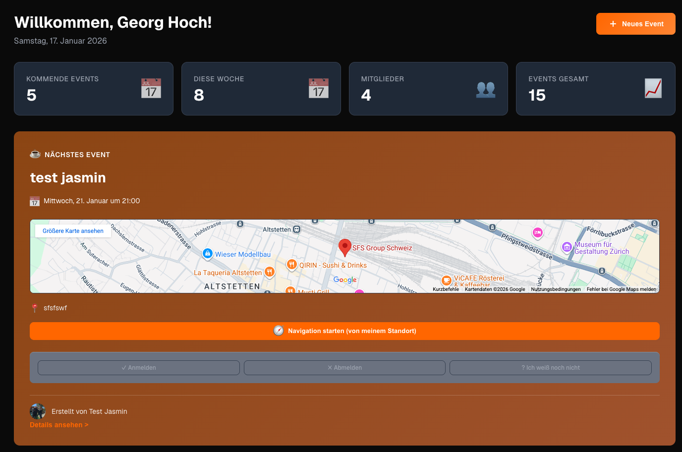 | Erstellung von Events durch Admins und Mitglieder | |||